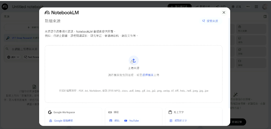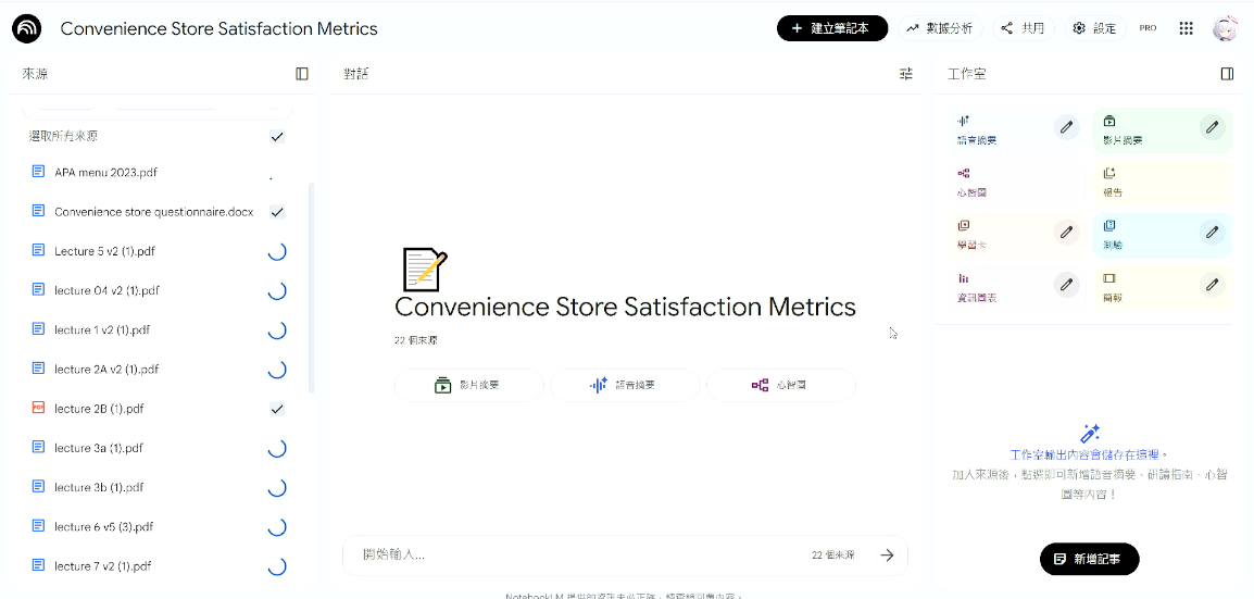 然后将所有的课件全部放到NotebookLM, 我们一次Notebook最多可以上传300份参考资料