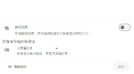 Workspace版本不支持直接将笔记本公开分享,只能预览并对话 个人版本可支持公开分享,如果是Google Workspace for Eduation版本可以直接共享到学生中