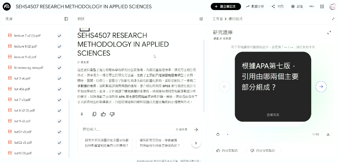 NotebookLM可以用于学习用途,比如讲解Lecture的知识,生成Lecture的闪卡和最后的测验,这种对于学生来说非常方便去准备考试或者学习新技能