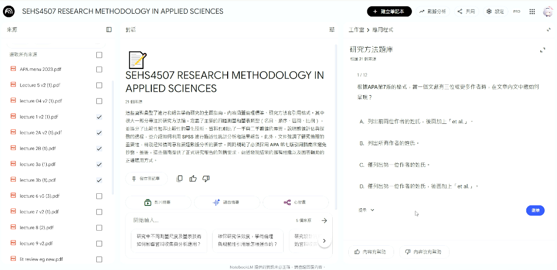 假设我有正在学习一个科目,名字叫Research Methodology in Applied Sciences, 我想建立一个知识库,所以我们可以下载它的所有课件