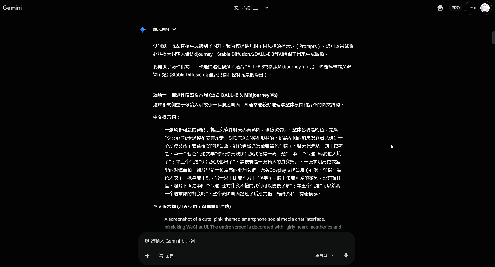 有时候banana能读取你的句子并生成图片,但是,有的情况下不能,所以,我们利用Gemini 3 Pro去生成文字提示词